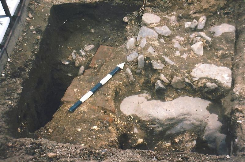 Opgraving kerk Ouddorp. Aansluiting zijbeuk op het oude kerkje