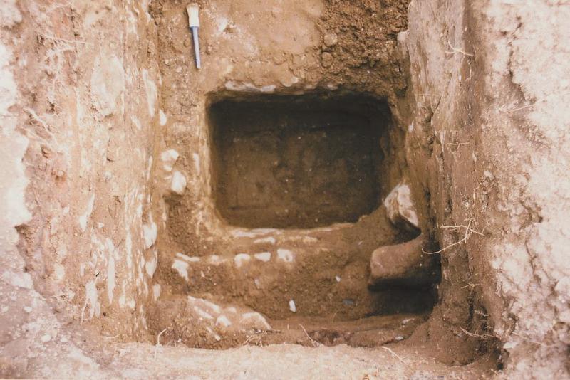 Opgraving kerk Ouddorp. Deel van de grafkamer