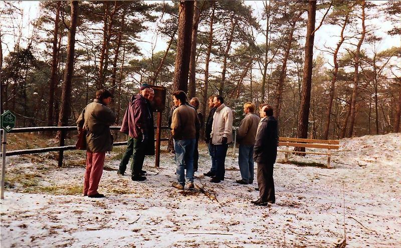 Voorzitter en R.O.B-correspondent W. Luys geeft uitleg nabij de grafheuvelgroep.