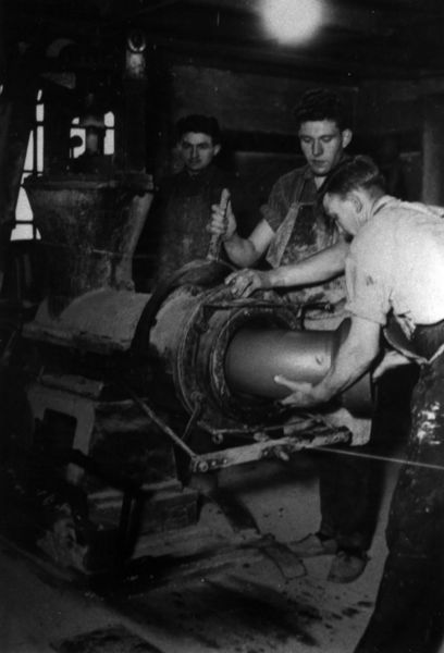 Het trekken van bochtstuk bij greswarenfabriek Janssen-Willemsen.