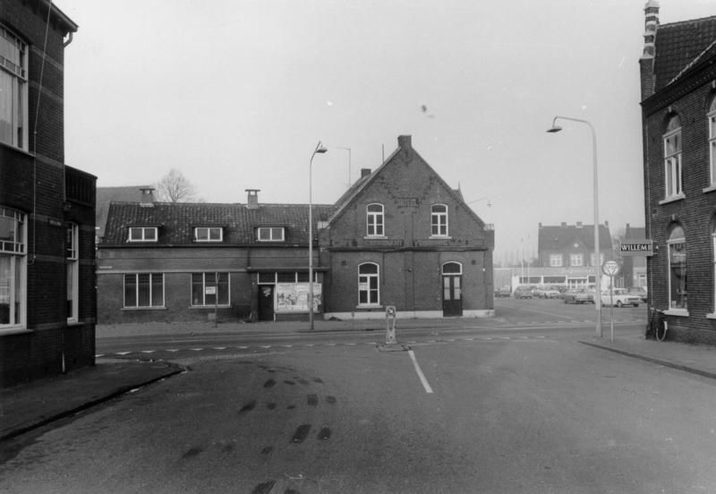 Stationstraat met uitzicht op café-restaurant Wed. Bors. In 1976 begon de ABN op dit terrein met de stichting van een nieuw bankgebouw.