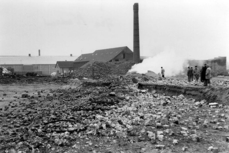 Schoorsteen gaat omver bij greswarenfabrieken Laumans.