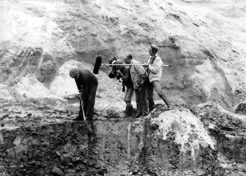 Piet v.d. Beuken in actie tijdens het kleisteken. Opnamen NOS van Gewest tot Gewest.