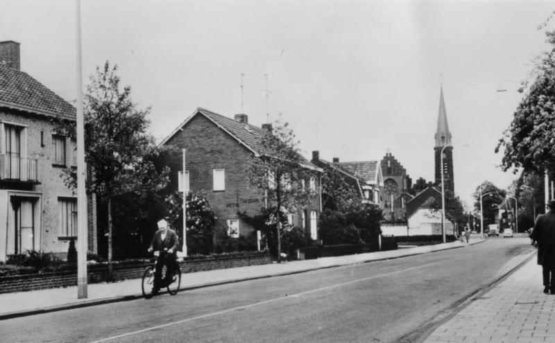 De Pastoor Vranckenlaan met op de achtergrond de St. Lambertuskerk en vooraan de woning van tandarts Bingen.