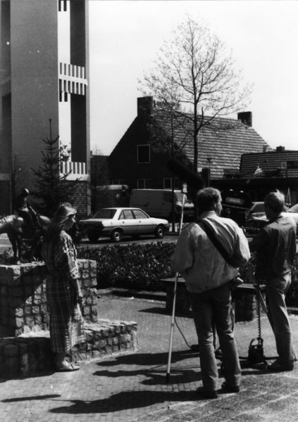 Claartje Muysers-Feyen bij het monument "De kleisjtaeker".