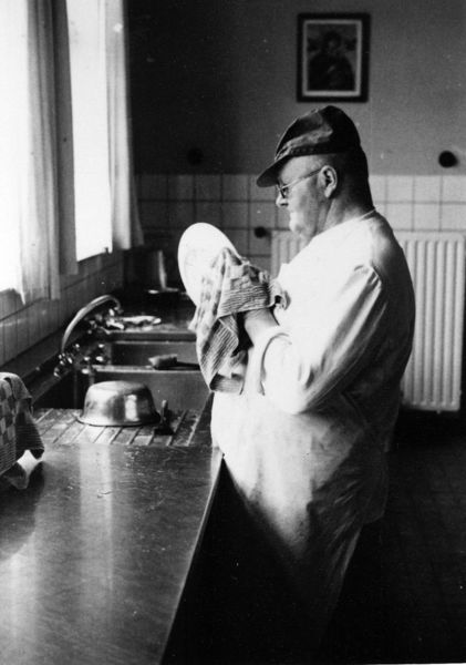Op de Leonardushoeve. Ook bij de paters moest er worden afgewassen.