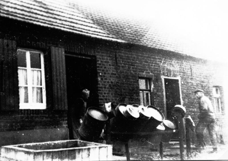 Boerderij met melkbussen.