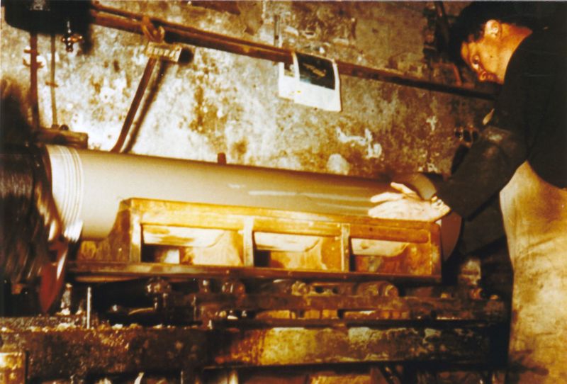 Greswarenfabriek Laumans. Een van de eerste Spaanse gastarbeiders.Rillen van het spieënd van de gresbuis.
