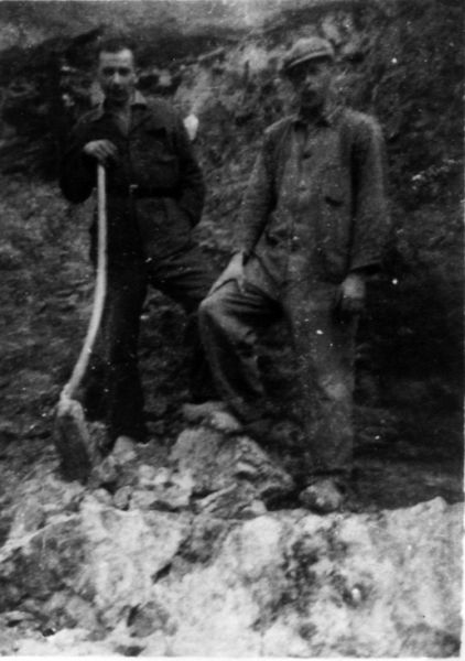 Wie Schoeren en Sjeng Timmermans in augustus 1940 in hun kleigroeve (Overhetfeld) net over de grens.