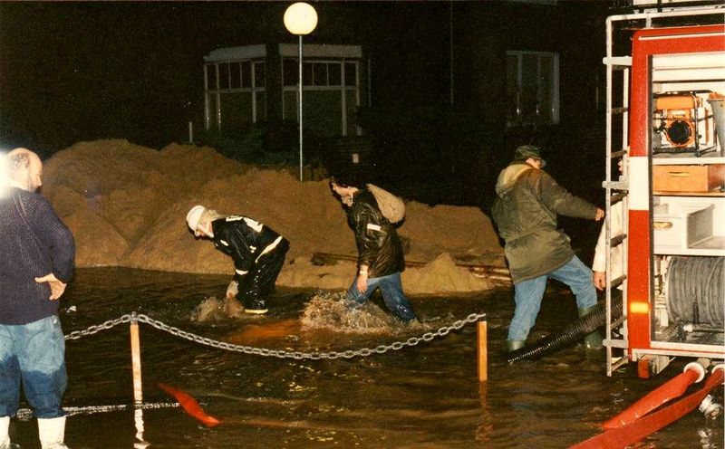 Dijkdoorbraak bij café Maaszicht tijdens de overstroming van 1993.