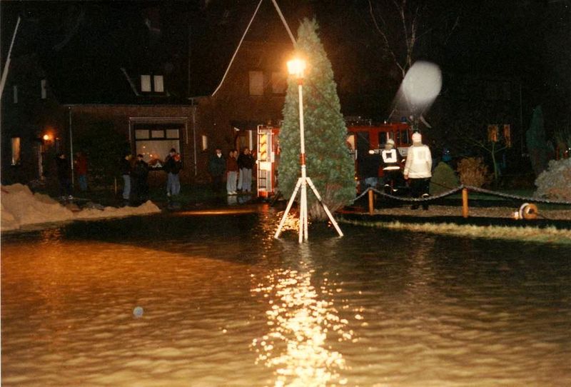 Dijkdoorbraak bij café Maaszicht tijdens de overstroming van 1993.