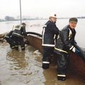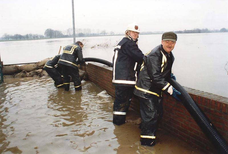 Poging om het water weg te pompen door de vrijwillige brandweer