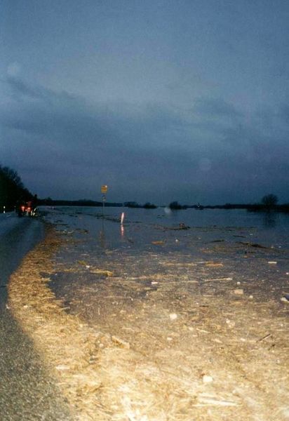 Afval van de Maas na de overstroming van 1993 ter hoogte van de Rijksweg Zuid in Belfeld.