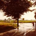 Hoog water van de Maas in de zomer van 1980 nabij het veer Beesel-Kessel.
