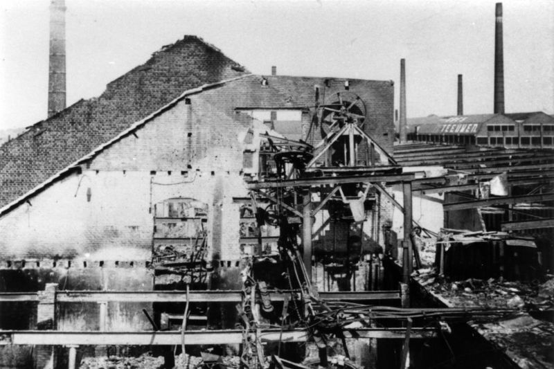 Door de brand in 1940 werd de greswarenfabriek Janssen-Willemsen grotendeels verwoest.