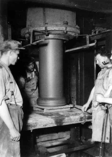 Het persen van gresbuizen bij Janssen-Willemsen.