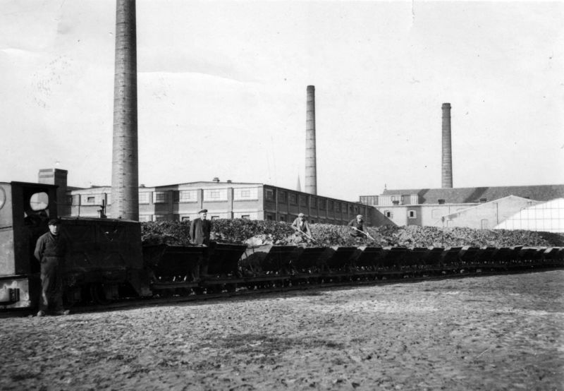 Kleitransport bij Janssen-Willemsen met de "Tuf". Links machinist Peelen.