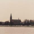 Hoog water van de Maas met op de achtergrond de kerk van Kessel en