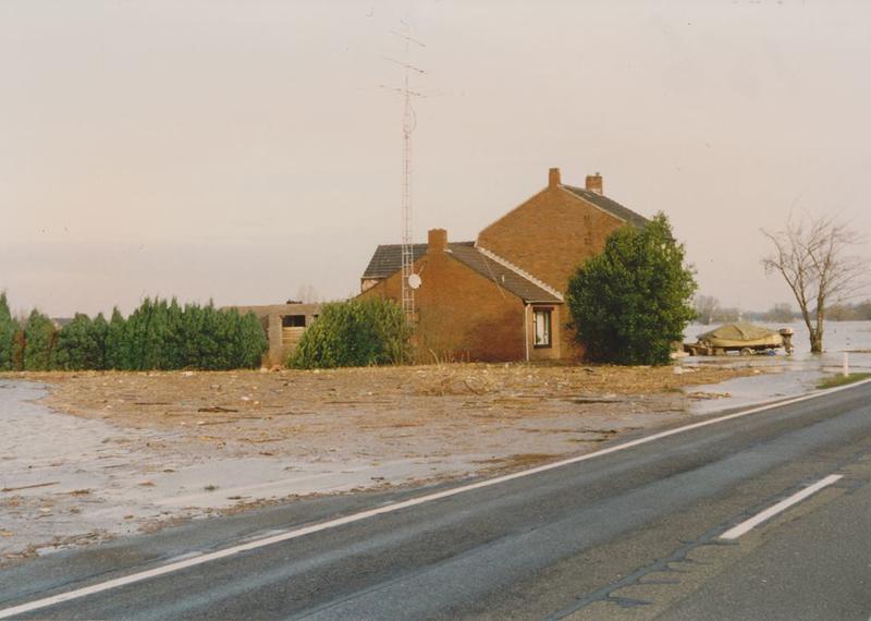De woning aan de Rijksweg Zuid tijdens het hoogwater van de Maas in 1993.