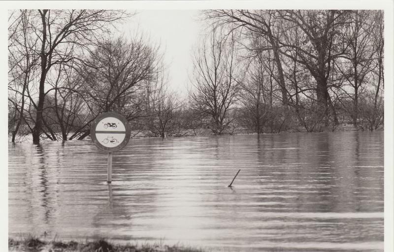 Belangstellenden bij Schelkensbeek tijdens overstroming van de Maas in 1995.
