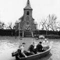Pastoor C. Willems met de boot naar het kerkje.