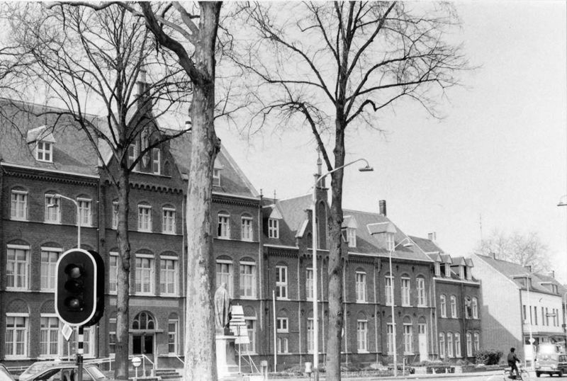H. Hartklooster voor de verbouwing met rechts in he klooster het bejaardenhuis Sint Jozef. In het witte gebouw helemaal rechts zat de apotheek van Reuver.