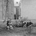 Aanleg van de markt in Reuver. De tuin van Lambert van der Velden is opgeruimd. De jeugd heeft tijdelijk een plek om te spelen.