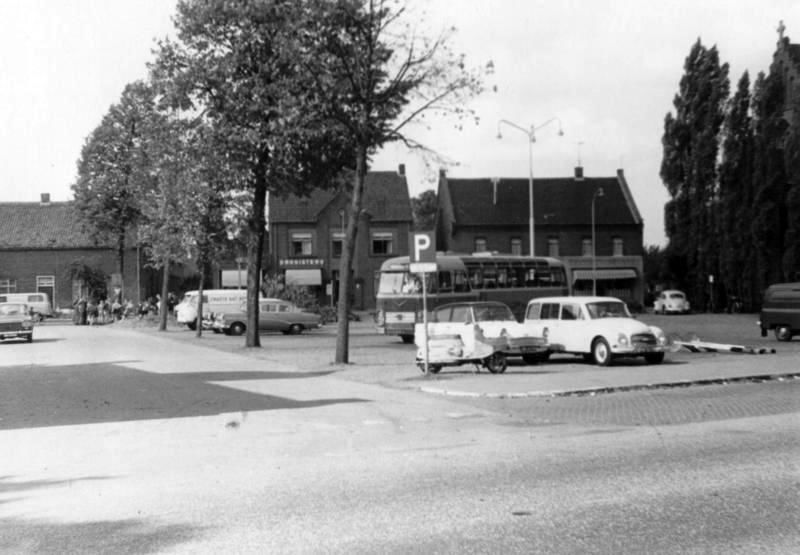 De markt in Reuver wordt gemoderniseerd, op de achtergrond de drogisterij van de familie Van Gassel - Goossens.