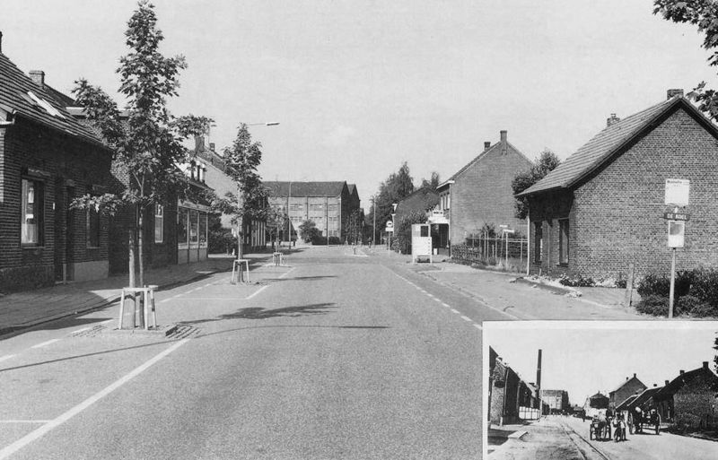 Keulseweg vanuit het oosten gezien met op de achtergrond de greswarenfabriek Teeuwen.