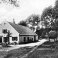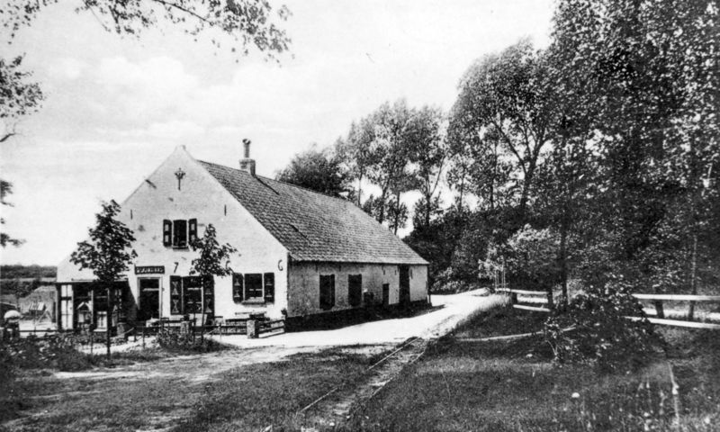 Café Restaurant Maalbeek in Belfeld. Op de voorgrond is nog het smalspoor van de Gres - Houben en Steeg - NGI zichtbaar.