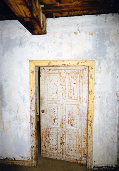 Deur in de keuken naar de achterkamers van Pand Peeters, een boerderij uit 1769 in Geloë.