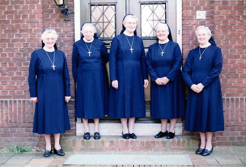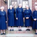 Zusters klooster. De laatste zusters bij de naderende sluiting van het klooster voor de ingang.