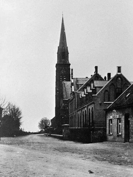 Kerk en H.Hart-klooster en café Heines-Goossens.. Het werd in 1899