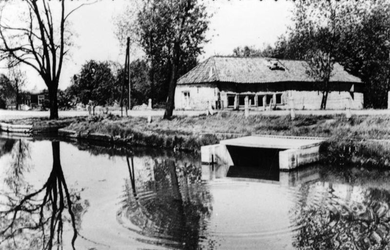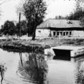 Vijver bij Ronkenstein met overlaat. Op achtergrond de vroegere watermolen.