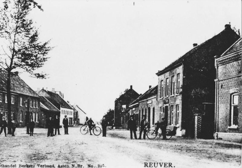 Links huizen van Meuter, "Het Witte Huis" van gez. Teunissen. Rechts café Herman v/d Velden, huis Houben en bakker Rutten.