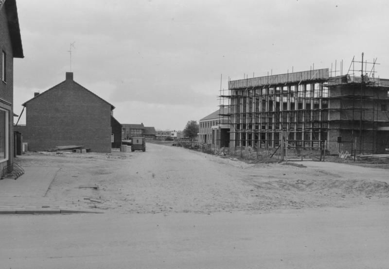 De kruising Pater Claretstraat - Keulseweg met rechts de Fatimakerk in aanbouw.