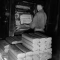 Jan Wolters aan de pannenpers (revolverpers) bij Janssen-Dings in Belfeld.