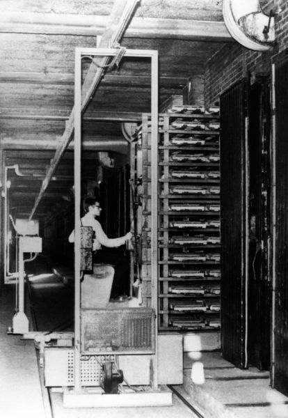 Inzetten van de pannen in de droogkamer door Toon Saris bij Janssen-Dings.