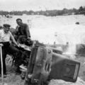 en Hornsby in de groeve van Janssen-Dings op Duits grondgebied. Rechts Wiel Pijnenburg.