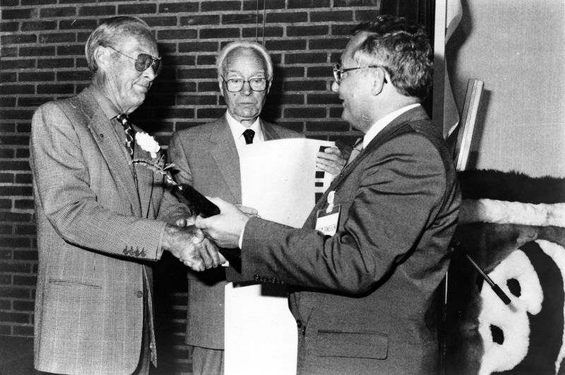 overhandigen bij EJA de NEC-exportpluim aan directeur Egidius Janssen.