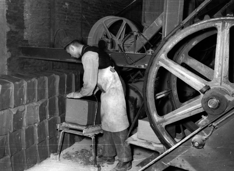 Blokken klei op maat "snijden" voor de pers.