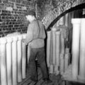 Het "zetten" van de buizen in de vlamoven bij de NGI.