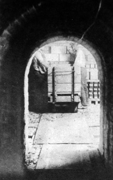 Een overslaande vlamoven waarin de kleistenen witgloeiend worden gestookt.