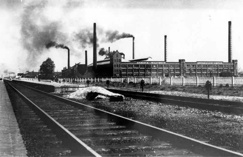 Greswarenfabriek Janssen-Willemsen. Zicht vanuit het zuidwesten ter hoogte van station Reuver.