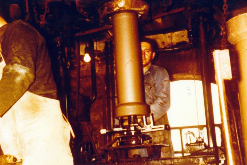 Wiel Stroeken aan de buizenpers. Greswarenfabriek Laumans