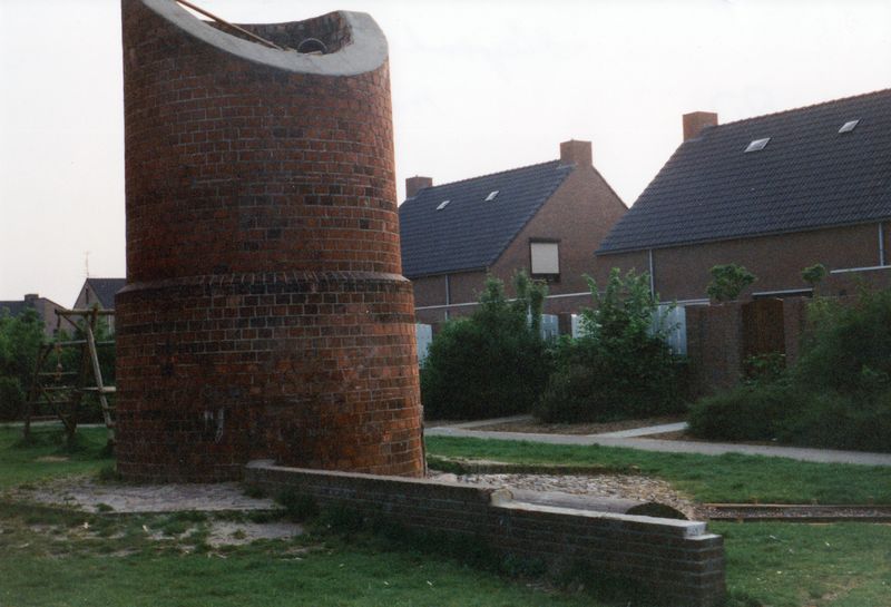 Stuk schoorsteen ter herinnering aan pannenfabriek Laumans.