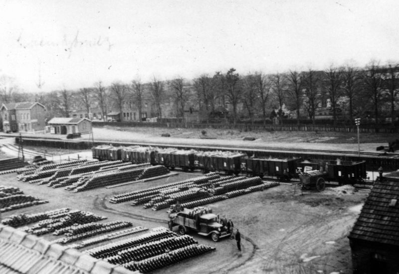 Inladen van gresbuizen op het lager van greswarenfabriek Janssen-Willemsen.