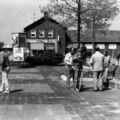 Links Jan Killaars en Jan Peulen. Recht (op de rug gezien) Huub Mans met Claartje Feyen.
