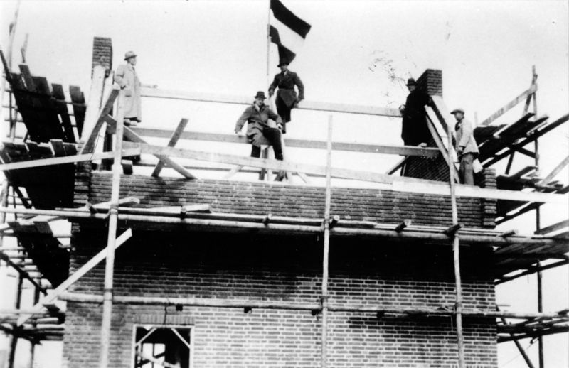 Wederopbouw na brand bij gresbuizenfabriek Janssen-Willemsen.