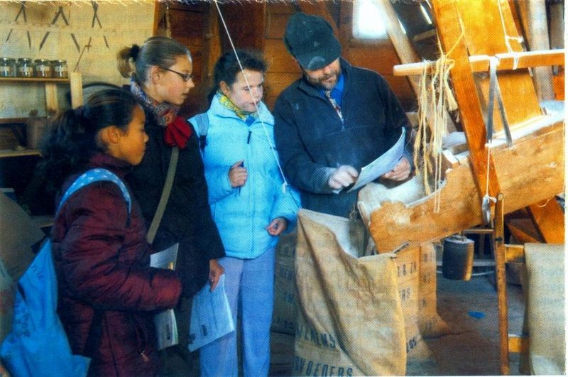 De molenaar van De Grauwe Beer geeft uitleg aan de kinderen.
